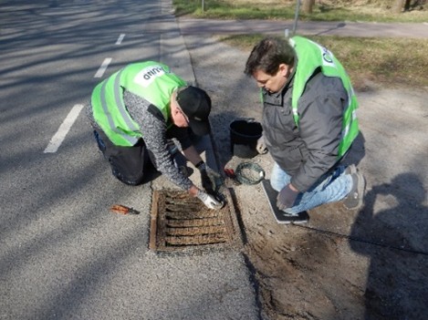 Für den circa zweistündigen Aufbau fanden sich über 30 Freiwillige, vom Kind bis zum Rentner zusammen. Entlang des Zaunes wurden waldseitig Eimer eingegraben. Wenn sich die Kröten abends und nachts auf den Weg zu ihrem Laichgewässer machen, laufen sie am Zaun entlang und fallen in die Eimer. Am nächsten Morgen werden die Kröten in den frühen Stunden dann aus den Eimern geholt, gezählt und mit Hilfe eines mitgebrachten Eimers sicher über die Straße zum See transportiert. Für diese tägliche Aufgabe gibt es schon einige Helfer*innen, die sich oft noch vor ihrer eigentlichen Arbeit auf den Weg zum See machen und damit aktiven Artenschutz für die bedrohten Amphibien betreiben. Interessierte Bürgerinnen und Bürger, die Lust haben, die Gruppe der Freiwilligen zu unterstützen, können sich unter: nordhorn-nachhaltig@web.de melden. Auto- und Radfahrer*innen werden gebeten, im gesamten Bereich Losser Straße und des Lebenshilfesees vorsichtig zu fahren, um die Sicherheit der helfenden Personen und der Amphibien nicht zu gefährden.